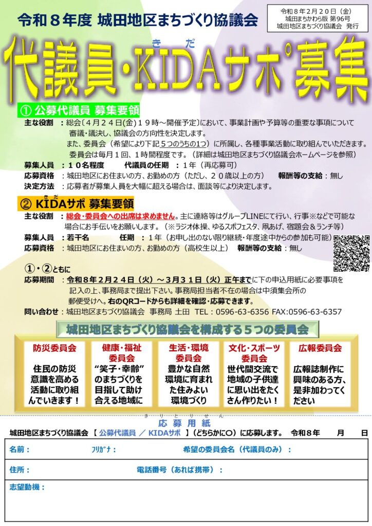 令和7年度から引き続き、代議員とKIDAサポの募集も始まります。