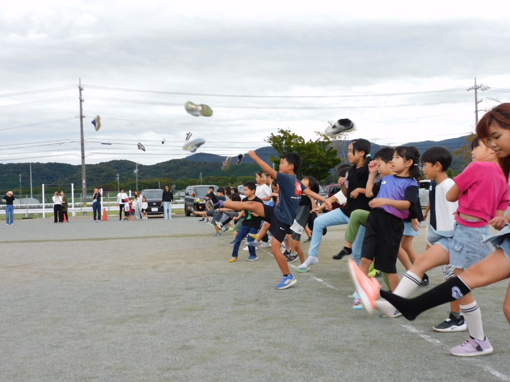 そして、最後の競技は靴飛ばし。部門ごとの優勝者のピースサインも共にご覧ください!